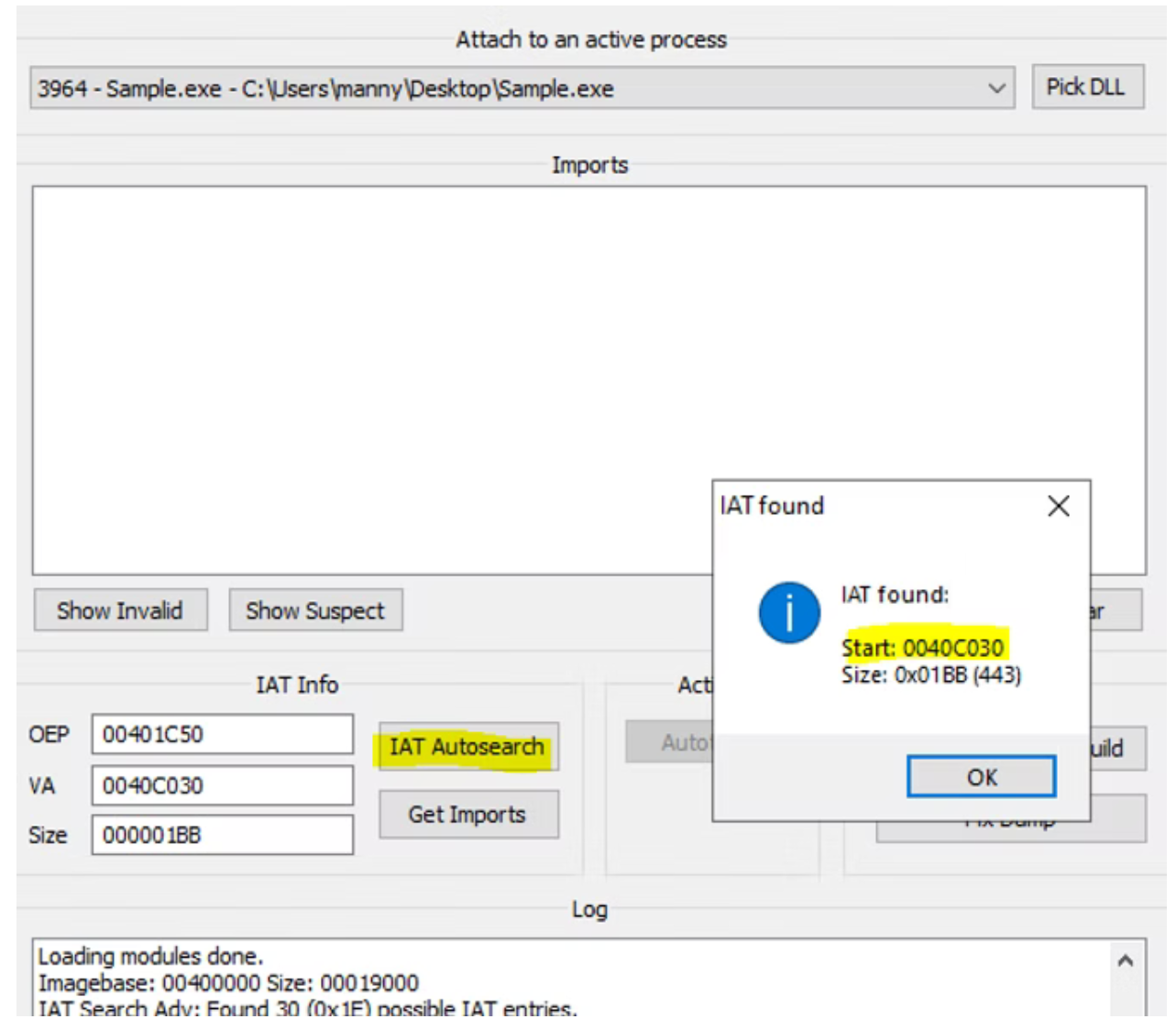 در نهایت، باید IAT (Import Address Table) فایل dump شده را اصلاح کنیم تا importها دوباره به درستی resolve شوند.