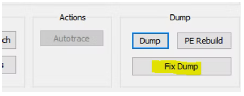 برای رفع این مشکل، من روی دکمه Fix Dump کلیک کردم تا ناسازگاری این آدرسها اصلاح شود.