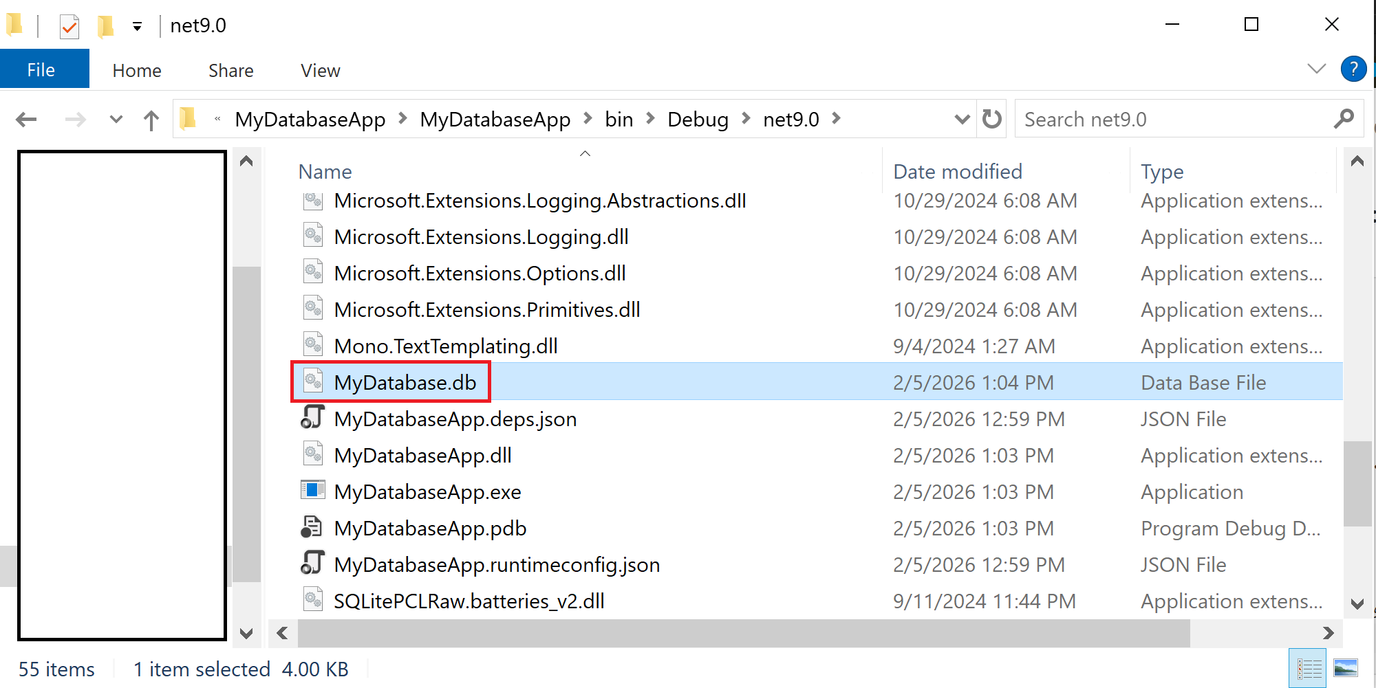 در داخل پوشه پروژه یک دیتابیس با نام MyDatabase.db ایجاد میشود.