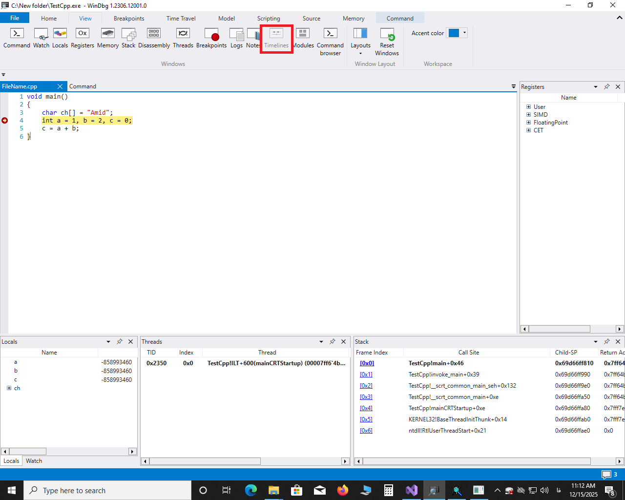 از بخش Timelines برای باز کردن پنجره Timelines یا انتقال فوکوس به آن استفاده میشود.