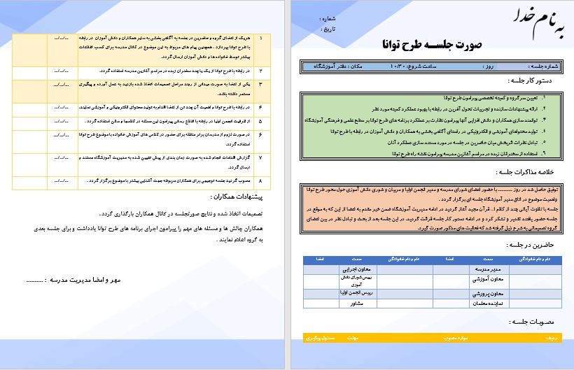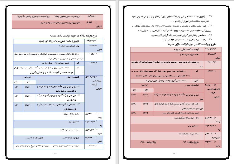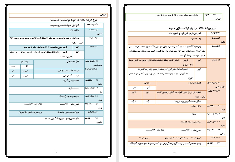طرح و برنامه سالانه در حوزه توانمند سازی مدرسه