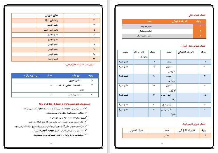 لیست برنامه های عملی و گزارش عملکرد رابط طرح توانا
