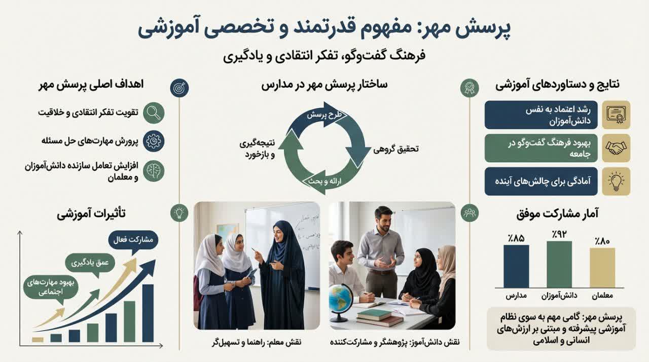 پرسش مهر را می‌توان نوعی سرمایه‌گذاری آموزشی دانست؛ سرمایه‌گذاری روی فکر، شخصیت و آینده دانش‌آموز. نتایج این سرمایه‌گذاری شاید فوری دیده نشود، اما در بلندمدت، دانش‌آموزانی مسئول‌تر، آگاه‌تر و توانمندتر به جامعه تحویل می‌دهد.