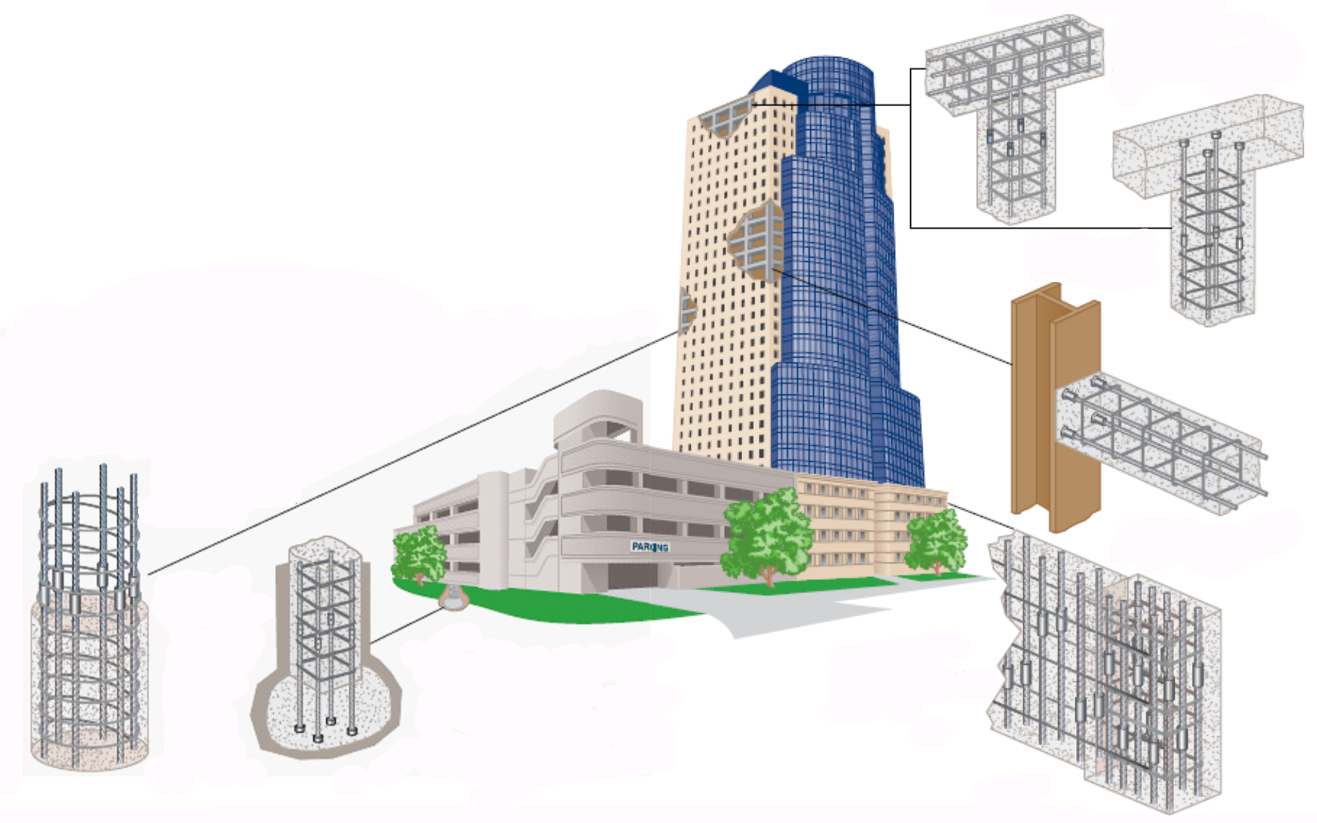 - کاربردها: در ستونها، دیوارهای برشی و فونداسیونهای عمیق.