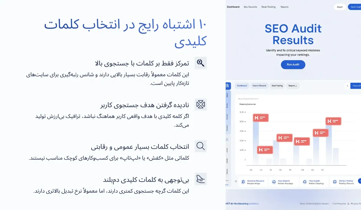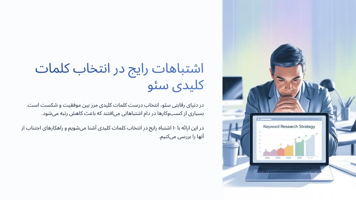 در دنیای رقابتی سئو، انتخاب درست کلمات کلیدی میتونه مرز بین موفقیت و شکست یک کمپین محتوایی باشه. اما واقعیت اینه که بسیاری از کسبوکارها و حتی متخصصان محتوا، هنوز در دام اشتباهاتی میافتن که باعث کاهش رتبه، کاهش نرخ کلیک و در نهایت از دست رفتن فرصتهای ارزشمند میشه. اگر میخوای مطمئن بشی که استراتژی کلمات کلیدی تو واقعاً کار میکنه و از این دامها دوری کنی، بهتره ابتدا با ۱۰ اشتباه رایج در انتخاب کلمات کلیدی آشنا بشی و بدونی چطور میتونی ازشون اجتناب کنی.