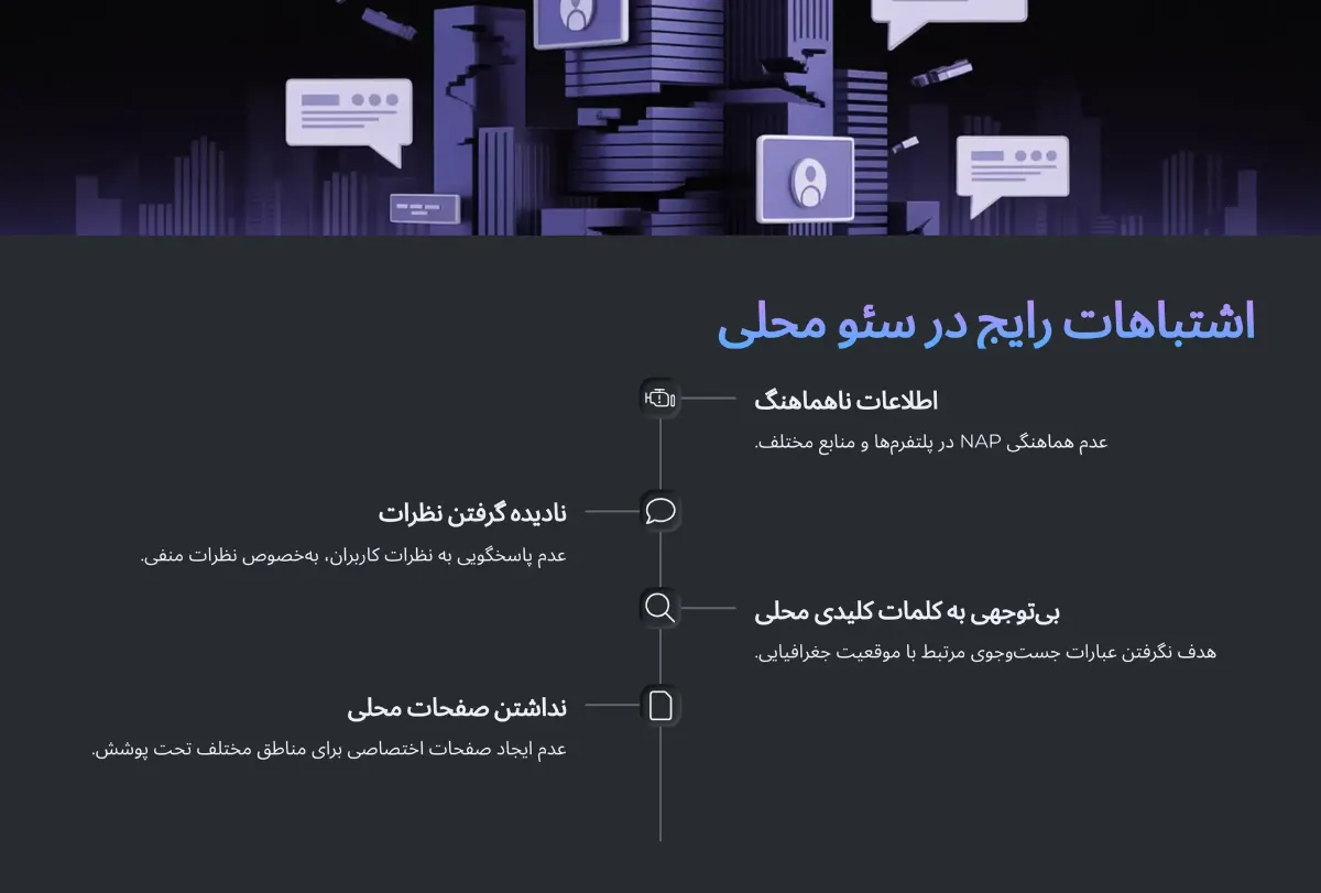 در دنیای رقابتی سئو محلی، حتی کوچکترین خطاها میتوانند منجر به از دست رفتن رتبه، اعتماد کاربران و فرصتهای فروش شوند. بسیاری از کسبوکارهای محلی به دلیل ناآگاهی از اصول بهروز سئوی محلی یا عدم استفاده صحیح از منابع، دچار اشتباهاتی میشوند که بهراحتی قابل پیشگیری هستند. در ادامه، سه مورد از مهمترین این اشتباهات را بررسی میکنیم و راهکارهای حرفهای برای جلوگیری از آنها ارائه میدهیم.