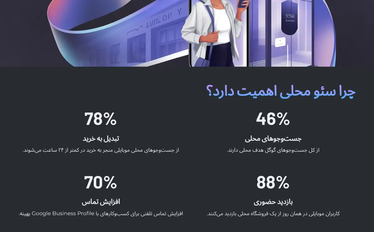 برای درک عمیقتر اهمیت سئوی محلی، بیایید به چند آمار معتبر و اثباتشده نگاه کنیم:
