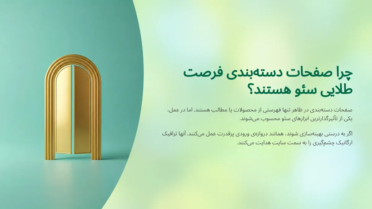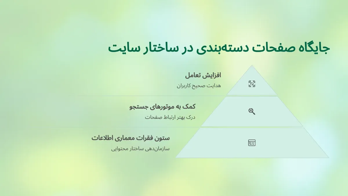 صفحات دستهبندی، ساختار محتوایی سایت را سازماندهی میکنند و به موتورهای جستجو کمک میکنند تا بهتر مفهوم و ارتباط صفحات داخلی را درک کنند.