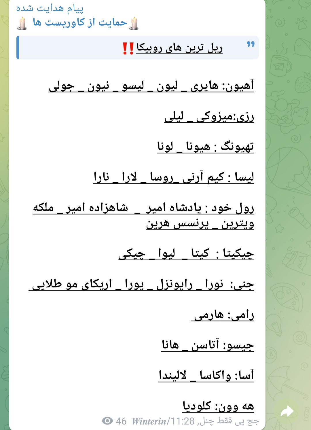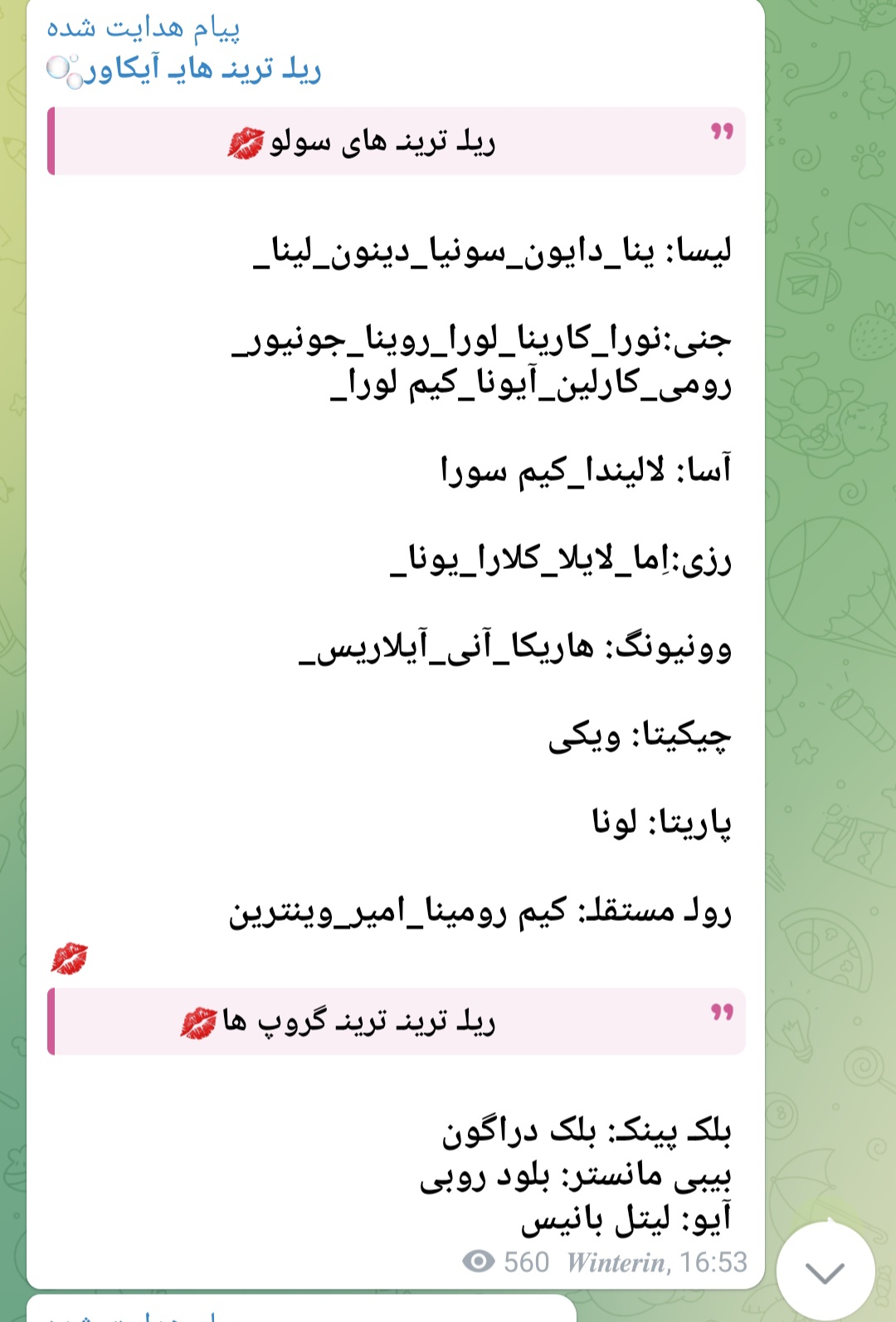 این یکی از پیام ها در رابطه با اولین اورجینالیست آیپاپ و آیکاور با نام وینترین هست