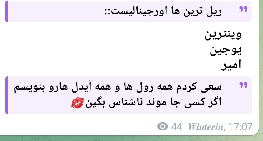 پست هایی در رابطه با ریلترین بودن وینتِرین:))