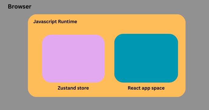 وقتی شما با zustand یک store در جایی می سازی در حقیقت در run-time جاوااسکریپت یه محدوده ای میسازی که داخلش چیزهایی که میخوای رو ذخیره میکنی.