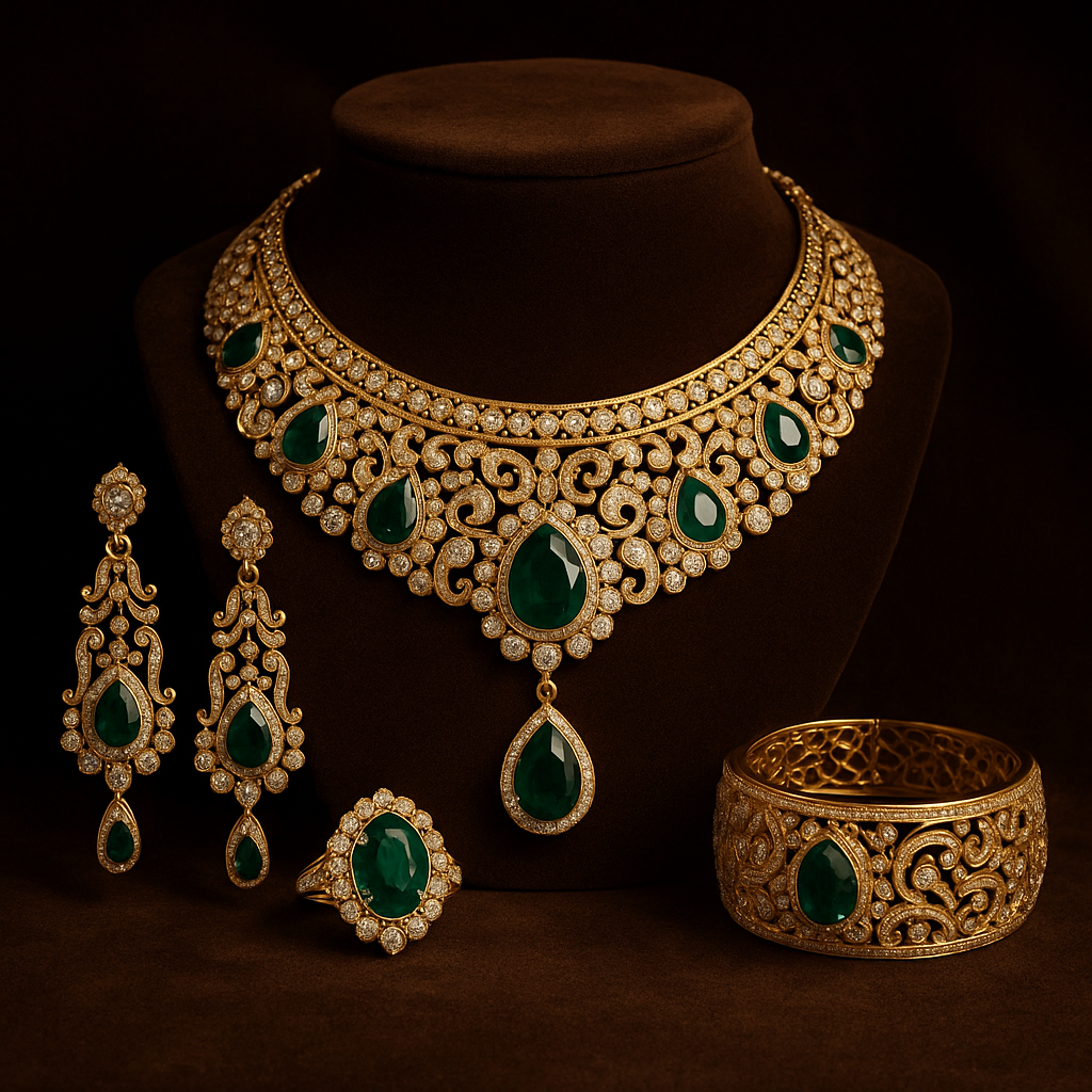 در سرویسهای طلا و جواهر سلطنتی، سنگها حرف اول را میزنند. ترکیب طلا با سنگهای گرانبها جلوهای شاهانه خلق میکند...