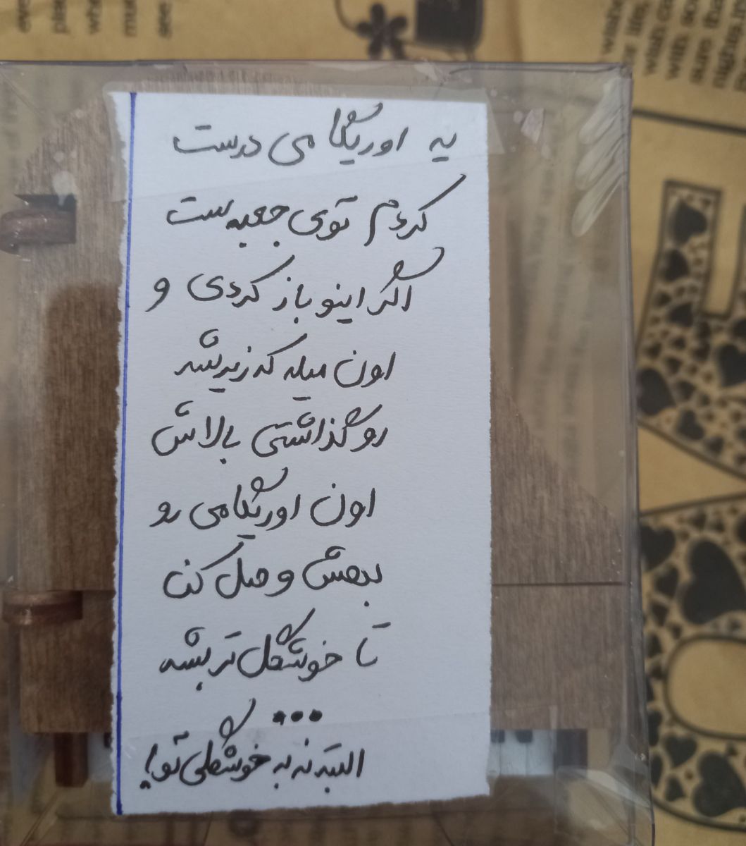 و سه شنبه بالاخره بسته رسید دستم همینجوری فقط داشتم میخندیدم قبل اینکه بسته رو باز کرده باشم. به هزار بدبختی کارتون پست رو باز کردیم دیدیم یه جعبه کفشه دور تا دورش فقط چسب نواری انگار چسب نواری ها رو مفت گرفته چند دور چسب نواری فقط. یه جایی حوصلم نمیکشید از بس ذوق داشتم میخواستم با دندون بازش کنم.
