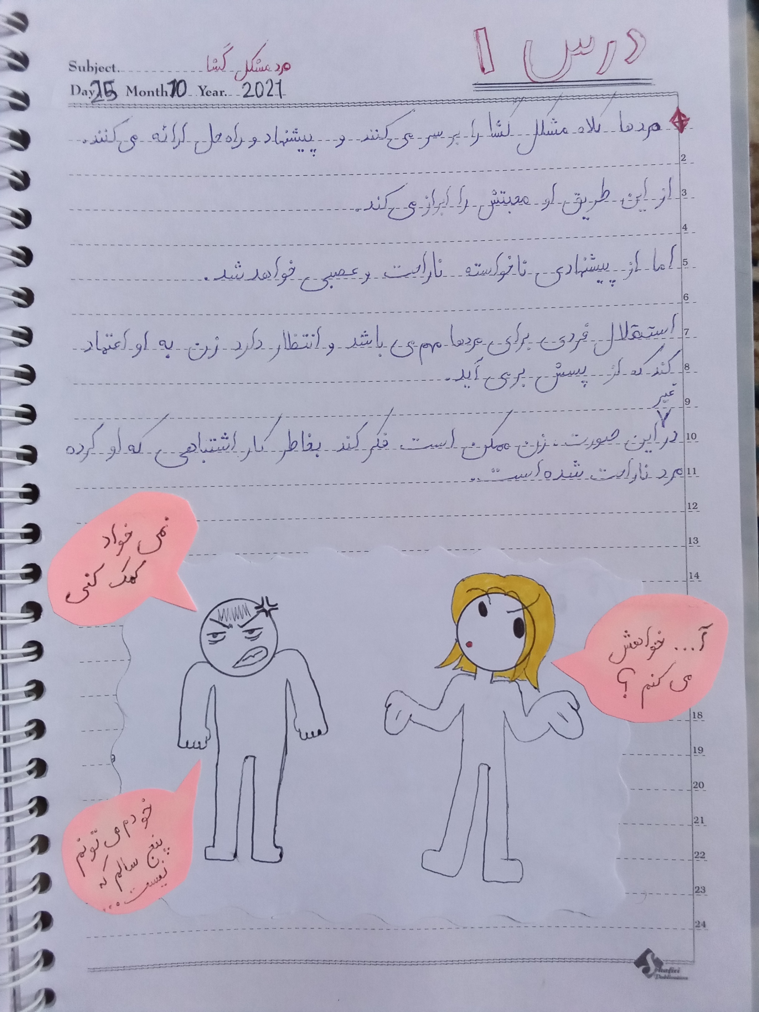 پی نوشت 2: دیروز یکی از دفترهایم را پیدا کردم که قبلاً توش جزوه می نوشتم. کتاب مردان مریخی و زنان ونوسی را به شکل جزوه در آورده بودم. با دیدنش کلی خندیدم و به یاد زمانی افتادم که کلی وقت برای خواندن کتاب و خندیدن داشتم. یادش بخیر.