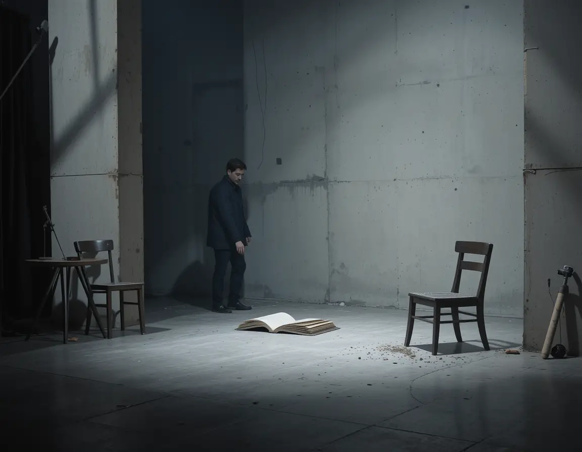 2. رخداد اولیه: بازیگری به طور تصادفی با کتاب برخورد میکند یا حرکت کاراکتر تکرار میشود و ابزار/صندلی جابجا میشود. کتاب و رفتار کاراکتر به عنصر دراماتیک فعال تبدیل میشوند.