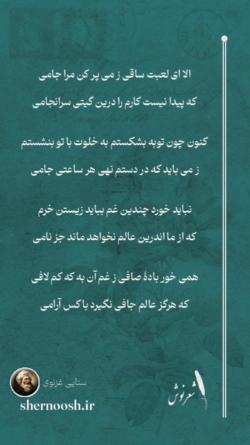 الا ای لعبت ساقی ز می پر کن مرا جامی / که پیدا نیست کارم را درین گیتی سرانجامی