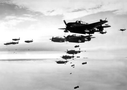 در اقیانوس آرام، آمریکا جزایر را آزاد کرد و با بمب اتمی بر هیروشیما و ناگازاکی، ژاپن تسلیم شد.