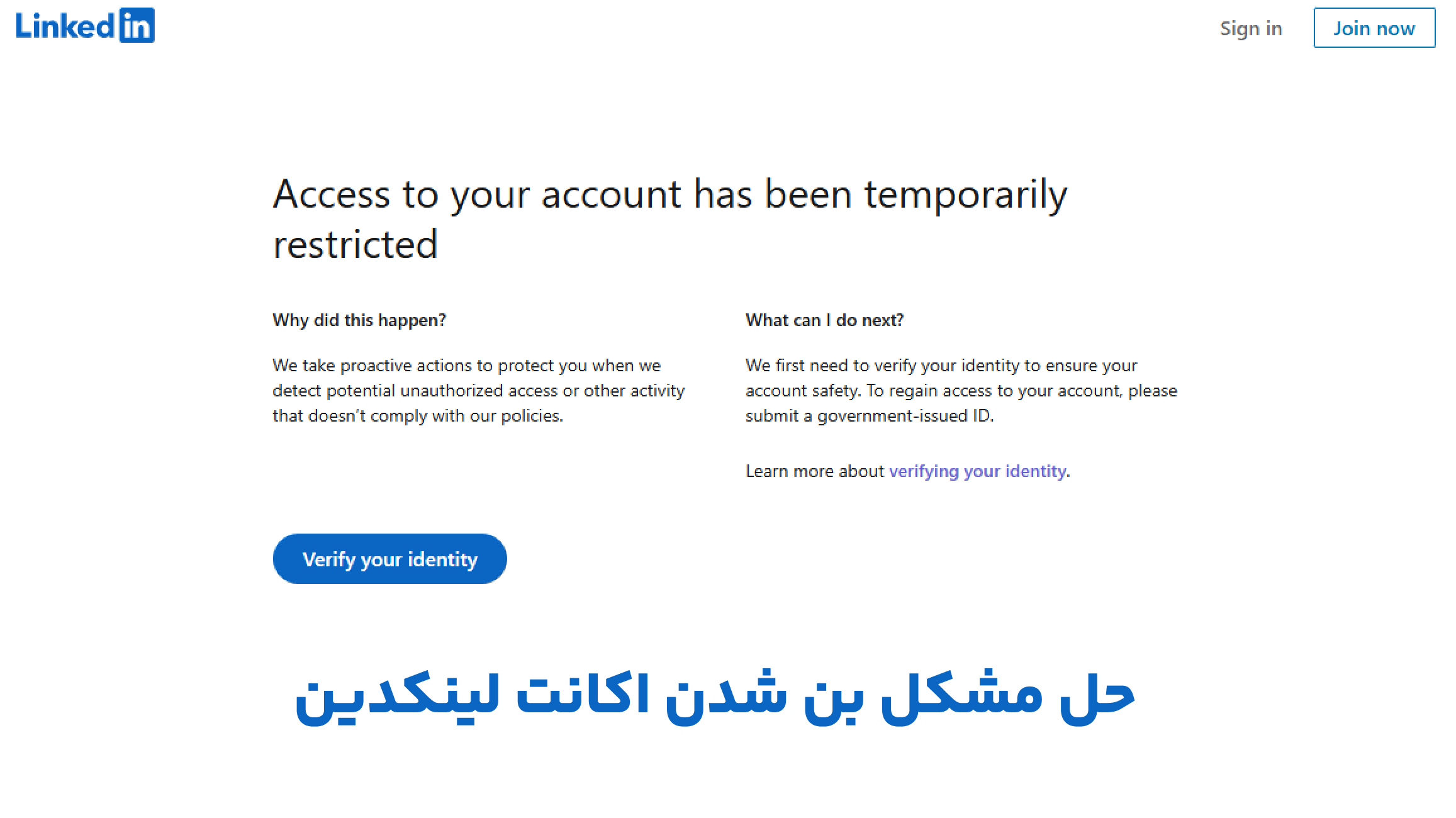 بهنظر میرسد لینکدین به اشتباه حساب کاربری من را مسدود کرده باشد.
