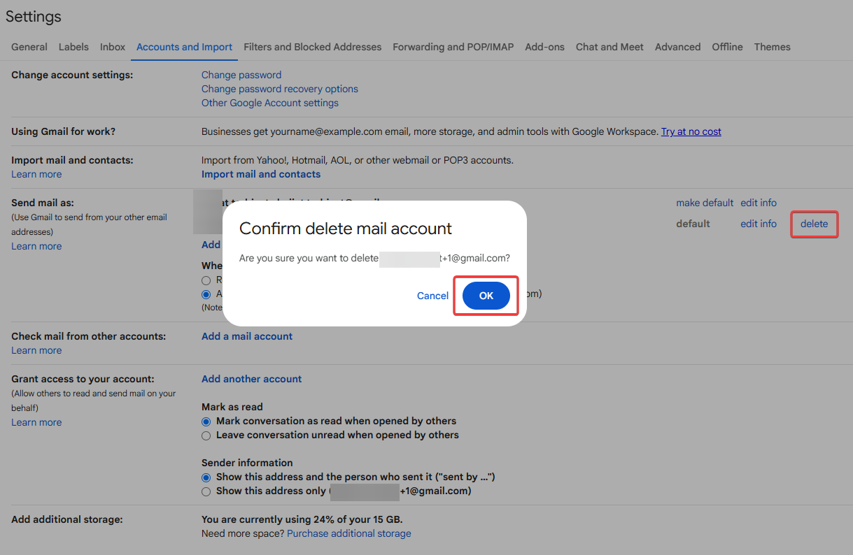 پس از حل مشکل، میتوانید ایمیل اضافه شده را حذف کنید. (طبق تصاویر زیر عمل کنید).