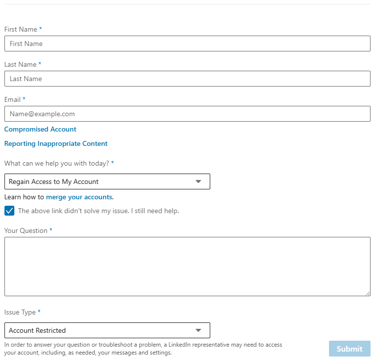 در این حالت لینکدین ایمیل شما رو به دلیل ارسال تیکت بیش از حد رستریکت می کنه