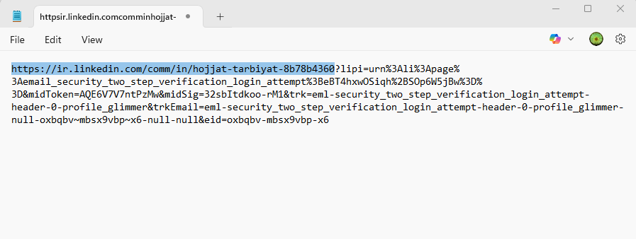 لینک دریافتی را در یک ویرایشگر (مثلاً Notepad) پیست کنید.