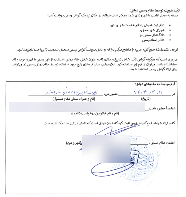 به یک دفترخانه رسمی مراجعه و «گواهی امضا» درخواست کنید.