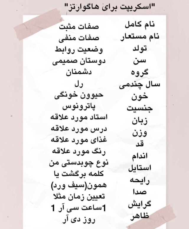 اسکریپ یعنی تمام چیز هایی که در دنیای DR میخواهیم داشته باشیم(خصوصیات ظاهری،خصوصیات اخلاقی،سن،چگونگی زندگی در DR،و...)