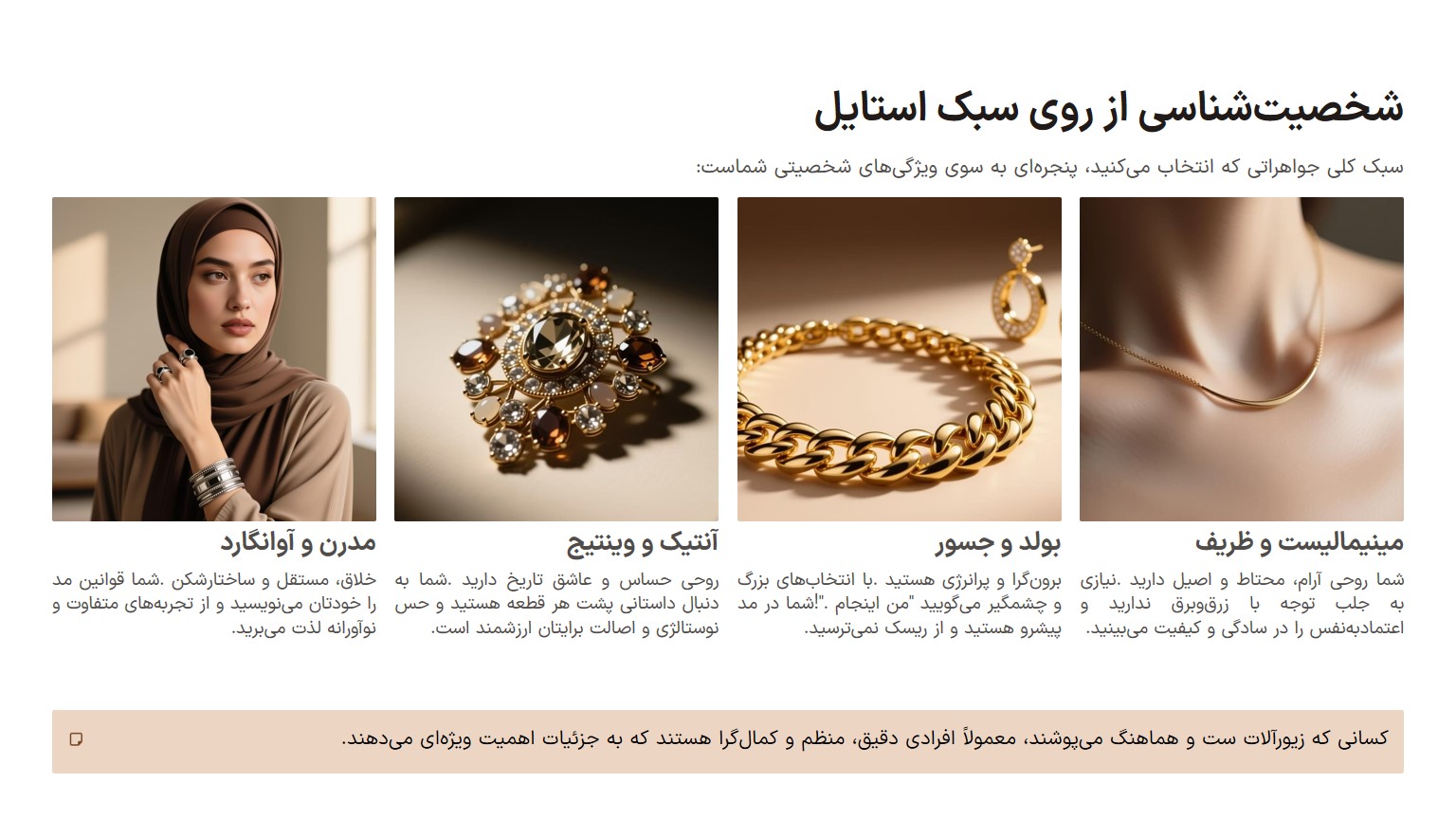 زیورآلات شما مثل یه نقشه راه برای شناختن دنیای درونتون میمونن، بدون اینکه لازم باشه حتی یه کلمه حرف بزنید.