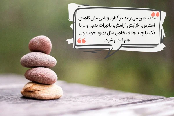 کاهش استرس: به کمک مدیتیشن میتوانید تنش بدنی را از خودتان دور کرده و تا حد زیادی به آرامش برسید.