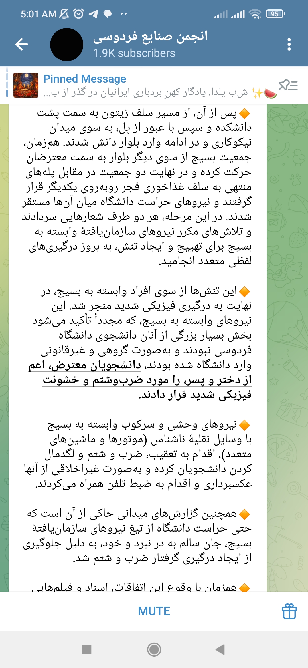 دم دمای سحر و اذان صبح امروز پنج اسفند(مقارن با ماه مبارک رمضان)، گوشیام را برداشتم و سری به تلگرام زدم.