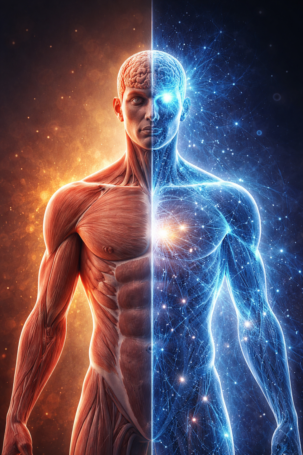 بدن انسان از اتمها ساخته شده و اتمها اساساً حامل انرژی هستند. این انرژی میتواند به شکلهای مختلفی ظاهر شود: حرکت، میدانهای الکتریکی و مغناطیسی، و برهمکنشهای شیمیایی. از دیدگاه فیزیک، ماده و انرژی دو روی یک سکه هستند و ماده در سطح بنیادی، شکل فشردهای از انرژی است. بنابراین آنچه ما به عنوان «بدن» میبینیم، در واقع یک الگوی سازمانیافته از انرژی است.