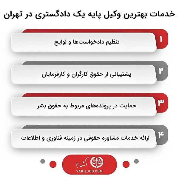 برای انتخاب بهترین وکیل پایه یک دادگستری در تهران، باید وکیلی را انتخاب کنید که در زمینههای حقوقی تخصص کافی داشته باشد. وکیل پایه یک دادگستری پس از گذراندن مراحل آموزشی و آزمونهای لازم، مجوز حضور در دادگاهها را دریافت کرده و میتواند از حقوق موکل خود در دادگاههای مختلف دفاع کند. وکیل پایه یک نه تنها به عنوان نماینده در دادگاهها، بلکه در ارائه مشاورههای حقوقی و تنظیم مدارک حقوقی نیز نقش اساسی دارد. سایت وکیلجو میتواند به شما کمک کند تا بهترین وکیل پایه یک دادگستری را برای حل مشکلات حقوقی خود پیدا کنید.