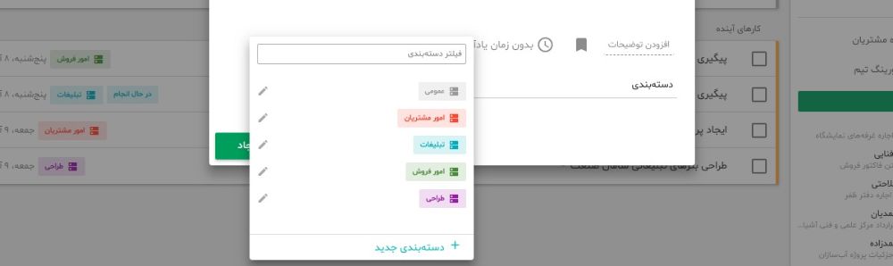 در پایین این بخش امکان ایجاد دستهبندی جدید با کلیک بر روی دستهبندی جدید وجود دارد: