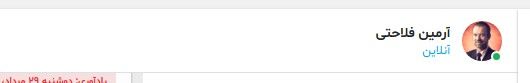 مشاهده وضعیت آنلاین بودن و یا حضور فرد در سیستم در قسمت بالایی فضای گفتگو و در پایین نام فرد.