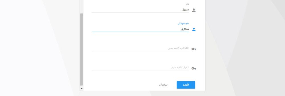 در پنجره باز شده، اطلاعات خود را از جمله نام، نام خانوادگی، کلمه عبور و تکرار آن وارد کنید و با فشردن دکمه تأیید، وارد میزِکار خود شوید.