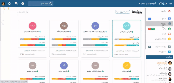 مفهوم پروژه در میزیتو یک مفهوم عام و به تمامی فعالیتهای به صورت فردی و یا گروهی قابل اطلاق است. برای توضیح بیشتر، هر فعالیتی در شرکت و یا سازمان قابلیت تعریف به صورت یک پروژه را دارد. شما میتوانید تمامی فعالیت ها روزانه فردی و یا شرکتی خود را در قالب یک پروژه ایجاد و مدیریت کنید.