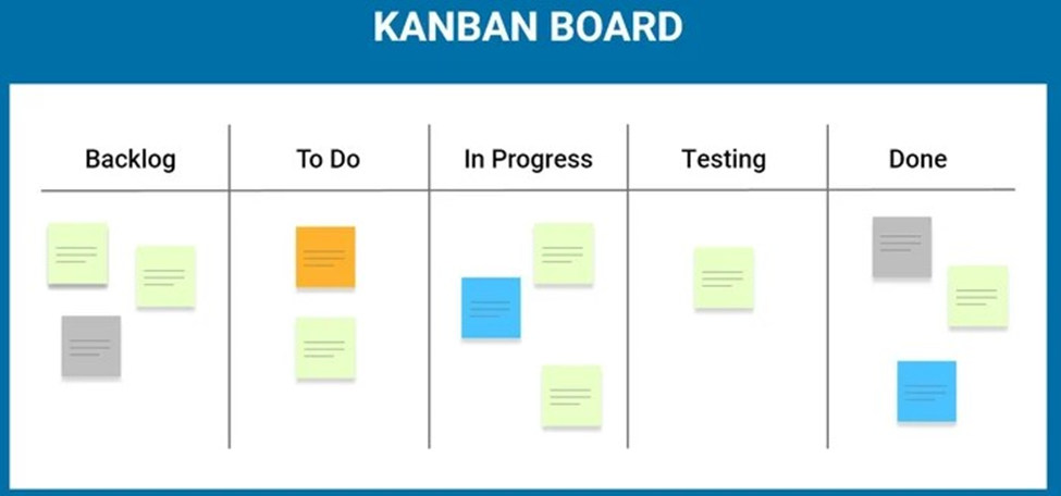 1. مصور سازی جریان کار: یک تابلو Kanban ابزار اصلی است که معمولاً به ستون هایی تقسیم می شود که مراحل مختلف کار را نشان می دهند (مانند "Backlog"، "To Do"، "In progress"، "Testing" و "Done"). مصور سازی وظایف به تیم ها کمک می کند گلوگاه ها (bottlenecks) و ناکارآمدی ها را ببینند.