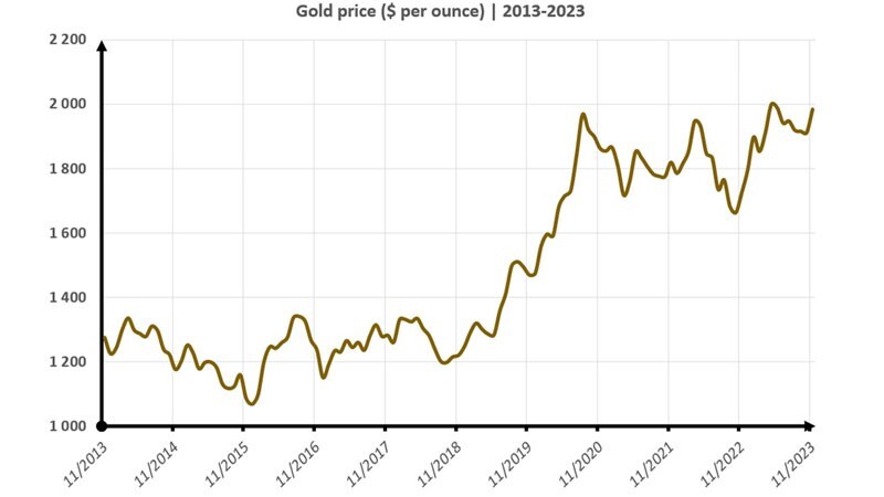 قیمت اونس طلا سال ۲۰۲۳