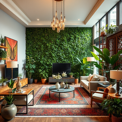 استفاده از گیاهان: گیاهان دکوری نه تنها به فضای شما طراوت میبخشند، بلکه اندازههای مختلف آنها میتواند به پُر کردن فضاهای بزرگ کمک کند.