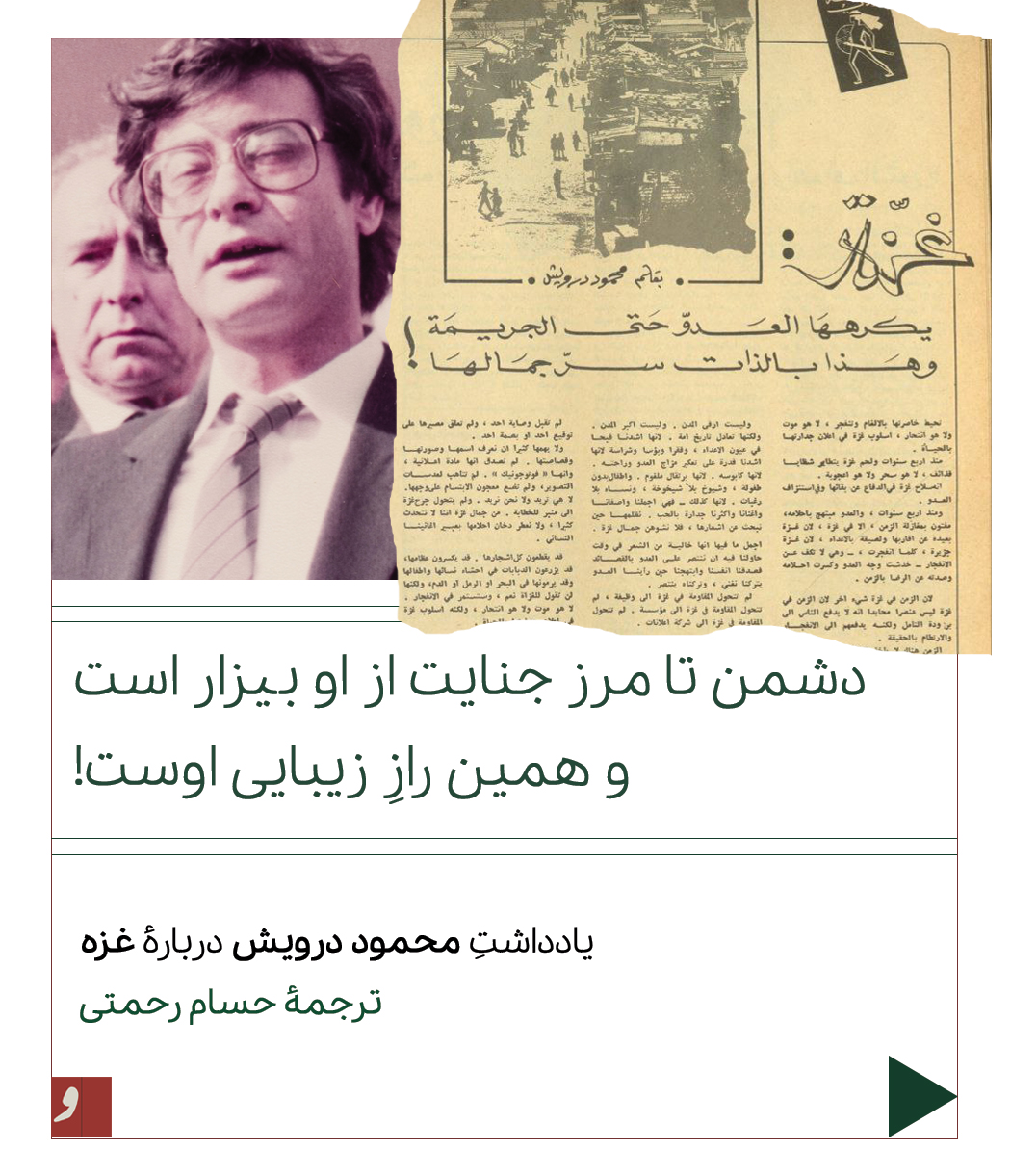 «غزه، که دشمن تا مرز جنایت از او بیزار است، و همین دقیقاً راز زیبایی اوست.»