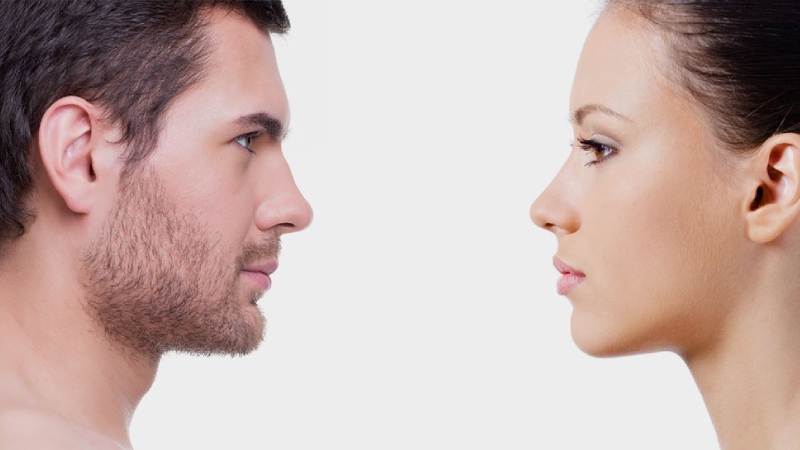 زنان معمولاً به دنبال نوک بینی کمی سربالا، پل باریکتر و زاویهی بین بینی و لب حدود ۹۵ تا ۱۰۰ درجه هستند.