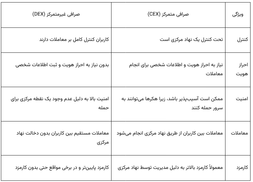 کارمزد پایینتر: به دلیل عدم نیاز به نهاد مرکزی برای پردازش معاملات، معمولاً کارمزدها در دکسها کمتر از صرافیهای متمرکز هستند.