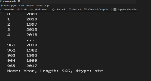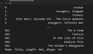 برای مثال، کد زیر تمام مقادیر ستون US_Gross_Million را چاپ میکند. خروجی این انتخاب بهصورت یک Series خواهد بود (یادآوری: دادههای یک ستون تکی در Pandas در قالب Series ذخیره میشوند.)