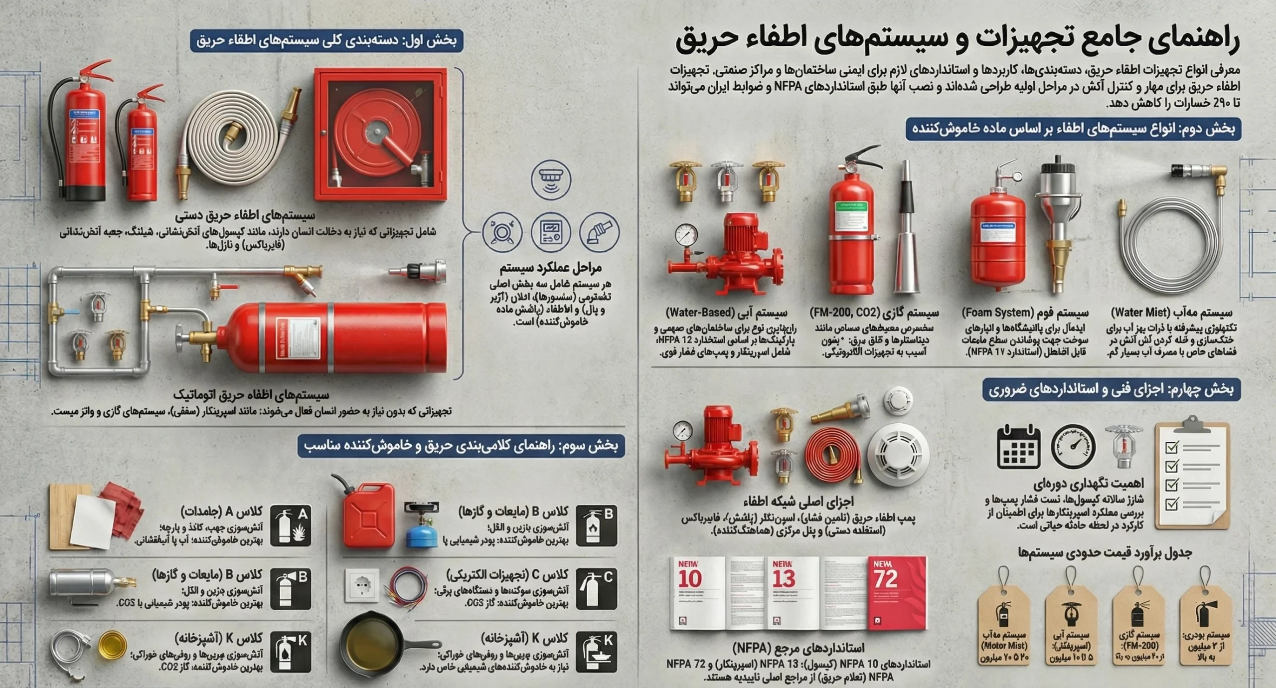انتخاب و نصب تجهیزات اطفاء حریق مناسب امروزه یک تصمیم استراتژیک است که نیازمند دانش فنی و آگاهی از آخرین فناوریهاست. با حرکت به سمت ساختمانهای هوشمند، سیستمهای اطفاء حریق نیز در حال تحول اساسی هستند. سرمایهگذاری در این تجهیزات نه تنها یک هزینه، بلکه یک بیمه ارزشمند برای حفظ جان و مال است.