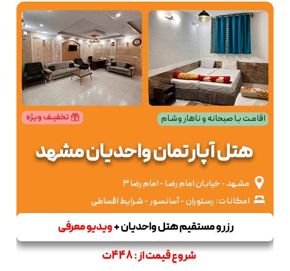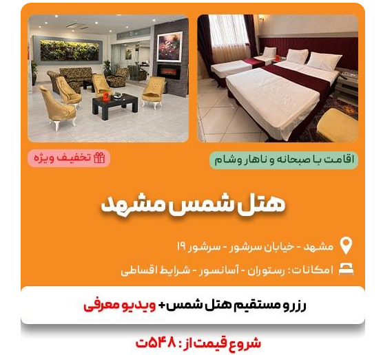 از هتلهای اقتصادی مشهد با غذا تا هتل مشهد با غذا در نزدیکی حرم، فقط کافیه تماس بگیری یا از سایت ما بازدید کنی. تیم ما همیشه آمادهست که مناسبترین گزینه رو با توجه به سلیقه و بودجهات پیشنهاد بده.