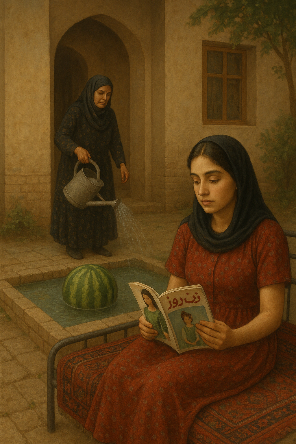 ننه با آن لباس بلند گلدارش طبق معمولِ عصر ها در حال آب پاشی ایوان و هندوانه ی گرد و درشتی هم در حوض آبی وسط در حال چرخیدن بود .دخترک روی تخت فلزی کنار حیاط با قالیچه ی دست بافت قرمز رنگِ روی آن ،نشسته و مجله ی زنِ روزی را که خواهر بزرگترش از تنها دکانِ روزنامه فروشی شهر خریده بود،ورق میزد.دخترک از دیدن مدل سارافون سبز رنگی که تن مانکن بود چشمانش برق زد و فک کرد که آن را برای عید نوروز که در پیش است به خیاط سفارش بدهد.لیلی دختر پنجم از خانواده ی ۱۰ نفره بود.۴ خواهر بزرگتر ازدواج کرده ، لیلی و دو خواهر دیگر همراه پدر و مادر و ننه زندگی میکردن.البته بقیه خواهر ها با شوهر و بچه هایشان مهمان همیشگی خانه پدری بودن و خواهرزاده در حال اتش سوزاندن در حیاط خانه ی پدربزرگ.زندگی نسبتا آرامی داشتن اگر چه گاهی اختلافات خانوادگی خواهر های بزرگتر،خانه را نا آرام میکرد،اما حضور مادر و علی الخصوص پدر آرامش را دوباره به خانواده باز میگرداند.در آن زمان در خانواده های جنوبی،نداشتن فرزند پسر،درد بزرگی بود و اغلب دلیل موجهی بود برای اینکه مرد ازدواج مجدد کند تا پسری به دنیا بیاید و از اجاق کوری درآید!!
