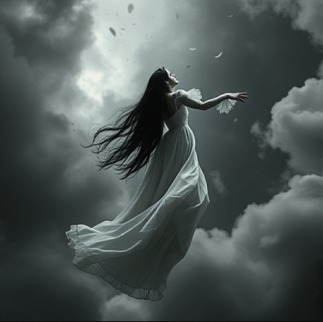 روی آسمان قدم گذاشت، برش های حریری پیراهنش مانند بالهای گسترده در کنار او به پرواز درآمد.