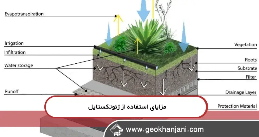 استفاده از ژئوتکستایلها و سایر ژئوسنتتیکها در طراحی و اجرای این فضاها، به محافظت از ساختار بام، زهکشی مؤثر و دوام طولانیمدت سیستم کمک میکند.