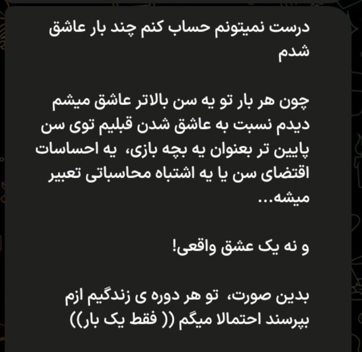 پ/ن: چرا وسط این همه بلبشو یک صدایی میگه : باور کن برای هم ساخته شدید روح و جسمتون در تلاقی باهم رشد کرده و اینهمه حرف بخاطر اینکه شبیه هم فکر میکنید احساس میکنید و رفتار میکنید ... اگر تونستی خودت رو ببخشید یک فرصتی هم به اون بده