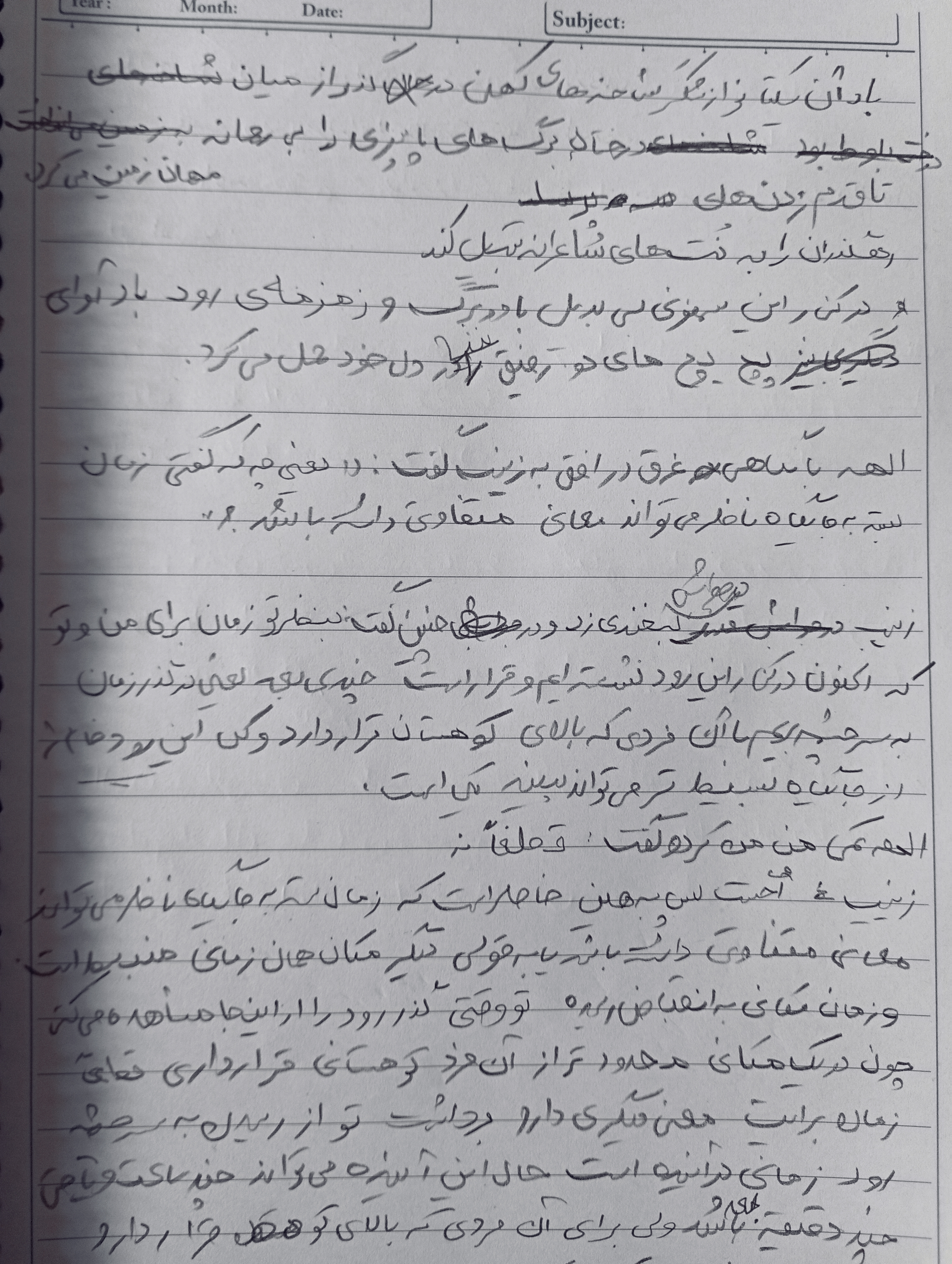 و در کنار این سمفونی بیبدیل باد و برگ و زمزمههای رود آوای پچپچ دو رفیق نیز در دل طبیعت جاری بود. الهه با نگاهی غرق در افق به زینب گفت یعنی چه که زمان بسته به جایگاه ناظر میتواند معانی متفاوتی داشته باشد. زینب در پاسخ لبخندی زد و گفت : به نظر تو زمان برای من و تو که اکنون در کنار این رود نشستهایم و قرار است در گذر لحظات به سرچشمه برسیم با آن فردی که بر فراز کوهستان ایستاده و کل رودخانه را از جایگاهی بسیطتر میبیند یکی است؟